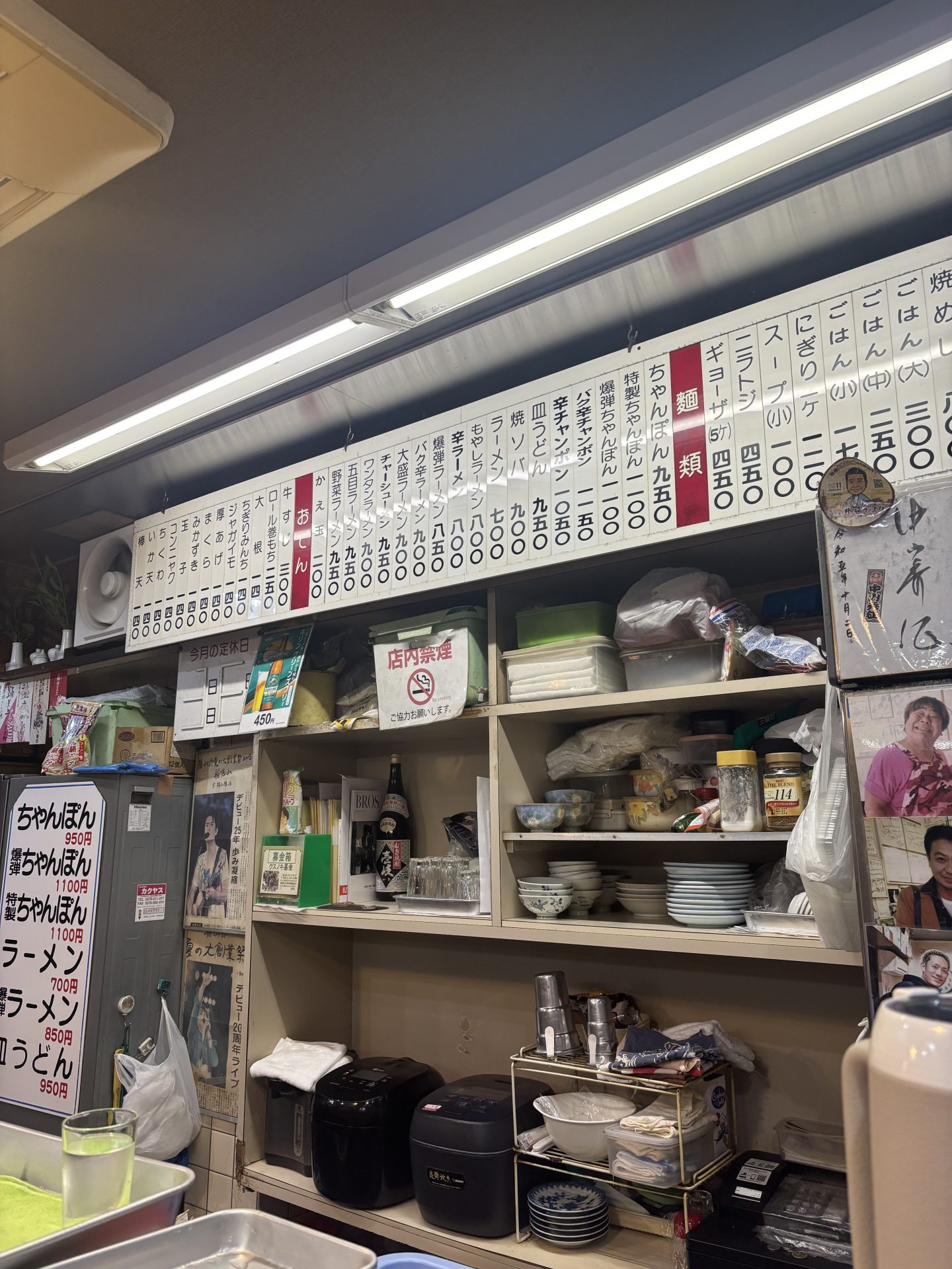 カウンターに座り、見上げると豊富なメニューの数々。「バク辛ちゃんぽん」も気になりますが、まずは定番の「ちゃんぽん」を注文します。