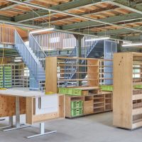 「HIROPPA(ヒロッパ)」から徒歩1~2分の場所には、〈マルヒロ〉のヘッドオフィスである「KOUBA(コウバ)」も。「マルヒロストア」以外の全てのスタッフがここを拠点に働いており、商品の企画や出荷などの業務が行われている。倉庫建築を活かした空間は、正面ホールをイベントスペースとして活用するなど、会社と地域が交わる場所としても使われている。