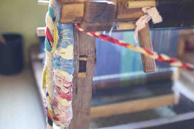 “裂織”というのは、使い古した布を細く裂き、織りこみ、