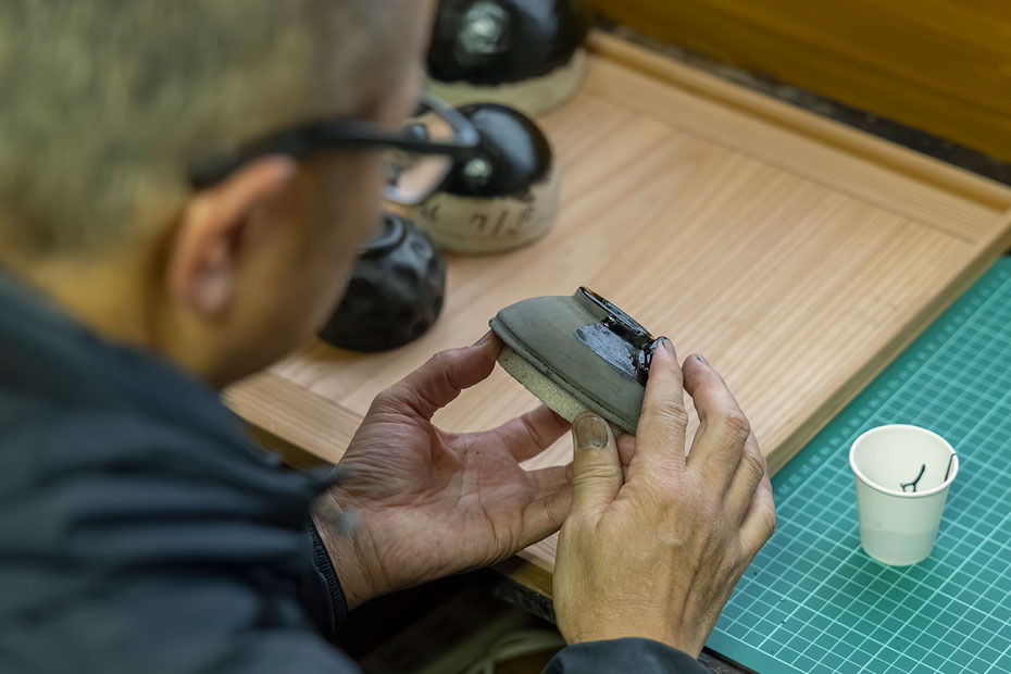 一般的に塗りの工程には、下地、中塗り、上塗りとあって、輪島塗は漆器のなかでも塗りの回数が最も多いといわれていますが、ある程度量をつくろうと思ったら、現在はせいぜい10回程度でしょう。自分たちの場合、100回を下回ることは絶対にありません」(松堂さん)