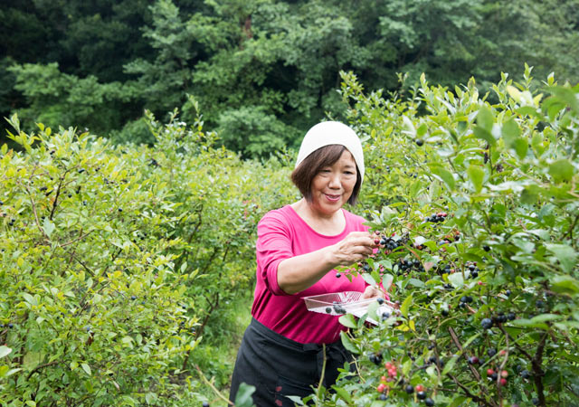 もちろん大好きです、ということで、〈プチカ農園〉というブルーベリー農家さんへ寄り道をして手摘み体験をさせてもらった。ひとつ口に含んでみると、甘く濃い汁がいっぱいに広がる。