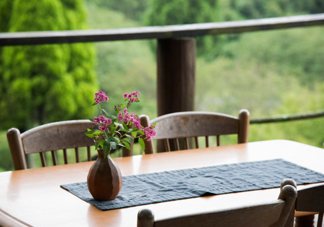 信子さんとふたりでテラスに出る。目の前に広がる緑を眺めていると、