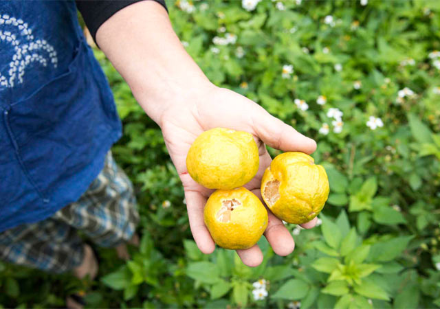 「ひと仕事終えたら、パラソルの下でシークワーサーを食べるの。