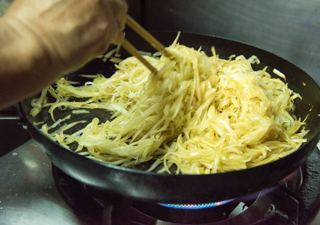 炒めてイリチーに。鰹出汁のよい香りが充満する。