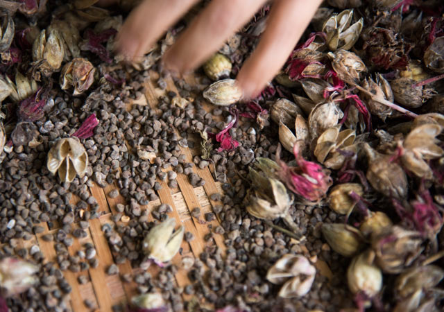 ローゼルを乾燥させて種を採取し、次の年へとその命をつなぐ。