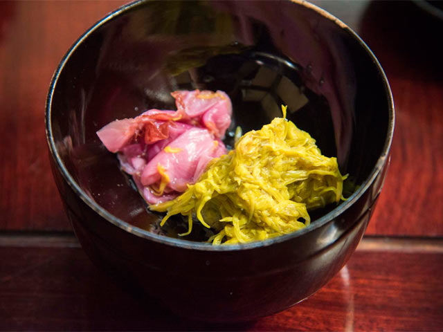 こっちは、菊の花と椿の花の酢の物ね」