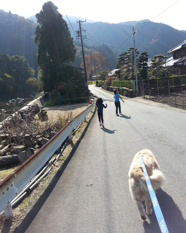 次の朝、沓沢家の住む地域の山の神様にお参りしました。ユウは何を言ったわけでもないのですが、鳥居の手前でぴったりと止まって待っていました。人間と暮らす動物と自然の動物の境界がそこにあるのかもしれません。
