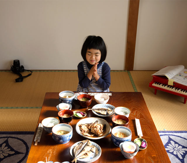 米は自家製。魚は地物。土に海に太陽に感謝。