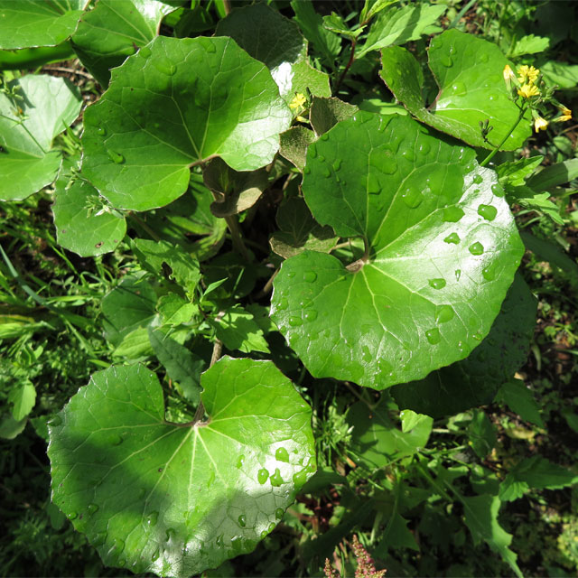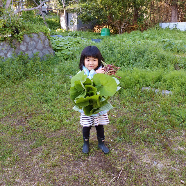 庭に自生しているふきを収穫。娘はこれ食べれるの? と。生きる知恵を育てたい。