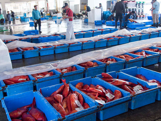 天気のよい朝に下田漁港へ出かけてみると、ちょうど金目鯛が水揚げされているところでした。下田は金目鯛の水揚げ高全国1位。ずらりと並ぶ金目鯛、てきぱきと作業をする男達、張りつめた空気に圧倒されました。