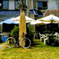 同じく看板の仕事の昼休憩、近くの公園で妻と娘がピクニックをしているというので自転車で駆けつけ合流。看板の仕事は市内のホテルや店舗の現場も多く、買い物に出ている妻と娘が通りかかり「パパ~がんばって~」との声が聞こえることもしばしば。本当に小さいまちです。悪いことできません……。