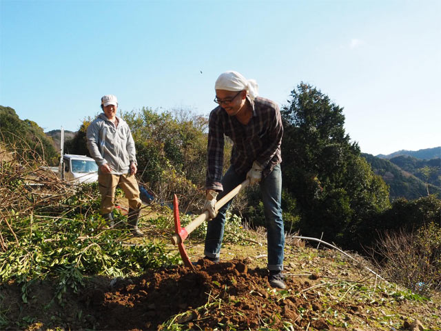 夫が仕事をしている高橋養蜂。「ミツバチの楽園」をつくるべく、高橋鉄兵さん(左)と山を開拓しています。その様子は前回の連載にて。