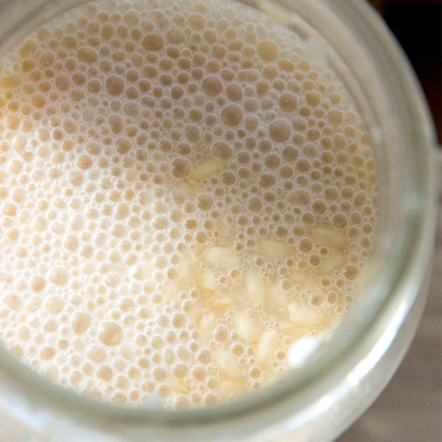 瓶のふたを開けると、プツプツと音を立てる酵母。甘酒のような風味です。