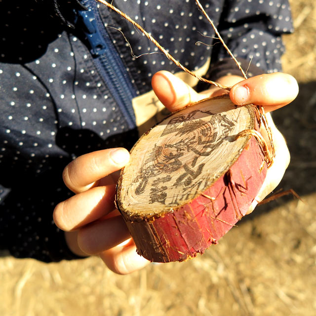 林業職業体験の証しとしてもらった「里山戦隊キッコリーズ」の手づくりペンダント。以前東京で行ったキッザニアとはだいぶ雰囲気の違う職業体験。娘は何を感じたのでしょうか。