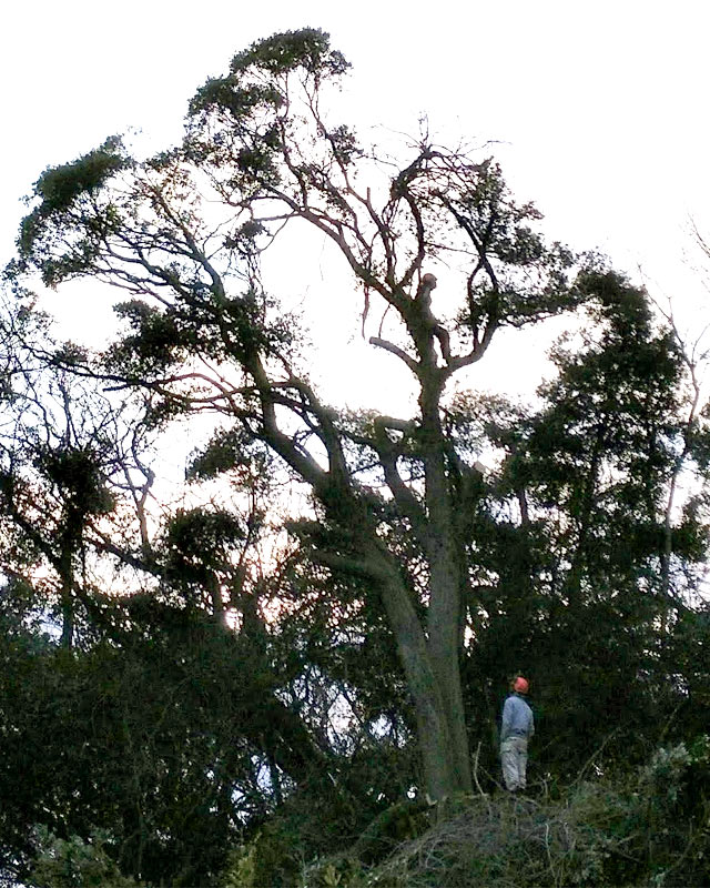 後日、南伊豆米店のスタッフが伐採にやってきました。林業のプロの仕事を間近で見たのは初めてでしたが、感動するほどの迫力と身体能力。こんな木の上に重いチェーンソーを持ってひょいひょいと登っていく。田んぼと山が彼らの仕事場。頼もしい若者たちです。