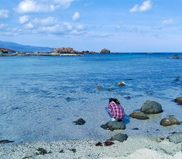 天気がいい日に出かける自宅近くの「九十浜海水浴場」。無料の駐車場に車を停め、そこから「爪木崎」まで散策。お金をかけなくても、こんなに気持ちのいい時間が持てるこの環境は、とても贅沢です。