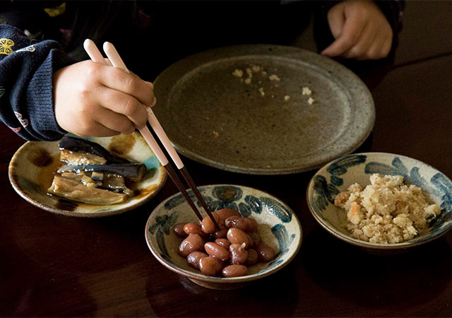 ご近所さんと友人にいただいたお惣菜で夕ごはん。家の味を交換できるようなこうした関係が、私にとってはとても居心地よく感じられます。茄子の煮浸し、煮豆、おから、ごちそうさまでした。