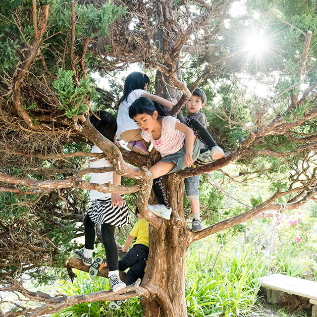 友だちが遊びに来てくれたので、庭の木に登って遊びました。総勢6人、ただ木に登るってだけなのにそれだけでみんな興奮状態。