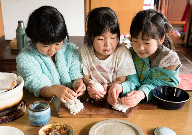 娘の友だちが遊びにくると、みんなでおやつをつくって遊んだりします。おにぎりを握ったり白玉団子をつくったり、みんな夢中です。