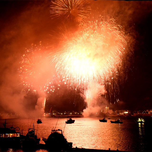 下田最大の祭典〈黒船祭り〉は毎年5月に開催。3日間の祭りの幕開けは花火大会です。多くの人で賑わうのですが、殺人的な混み具合の東京の花火大会と比べたらかわいいもの。のんびりと花火を楽しめます。もう東京の花火大会には行けません……。