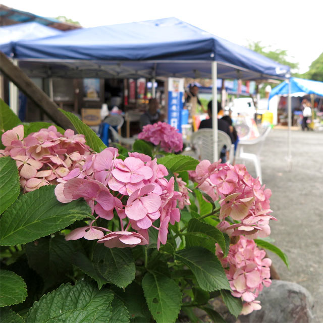 〈あじさい祭り〉期間中は露店もあり、リーズナブルにご当地料理が味わえます。「花より団子」の人も安心!
