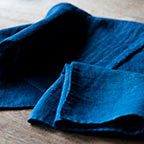 生成りの麻生地を藍染した布巾を今後販売する予定。触り心地も色もとても気持ちがいい。乞うご期待。